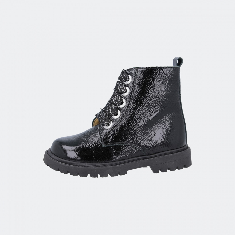 Nuestra bota militar de charol suave negro es la elección perfecta para niñas mayores y madres que buscan un calzado versátil y duradero. Con su diseño atemporal y su alta calidad, esta bota se convertirá en un básico en el armario de cualquier fashionista.