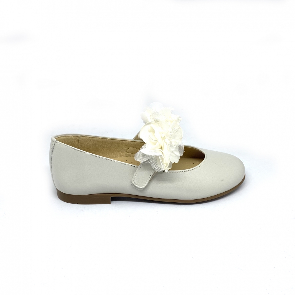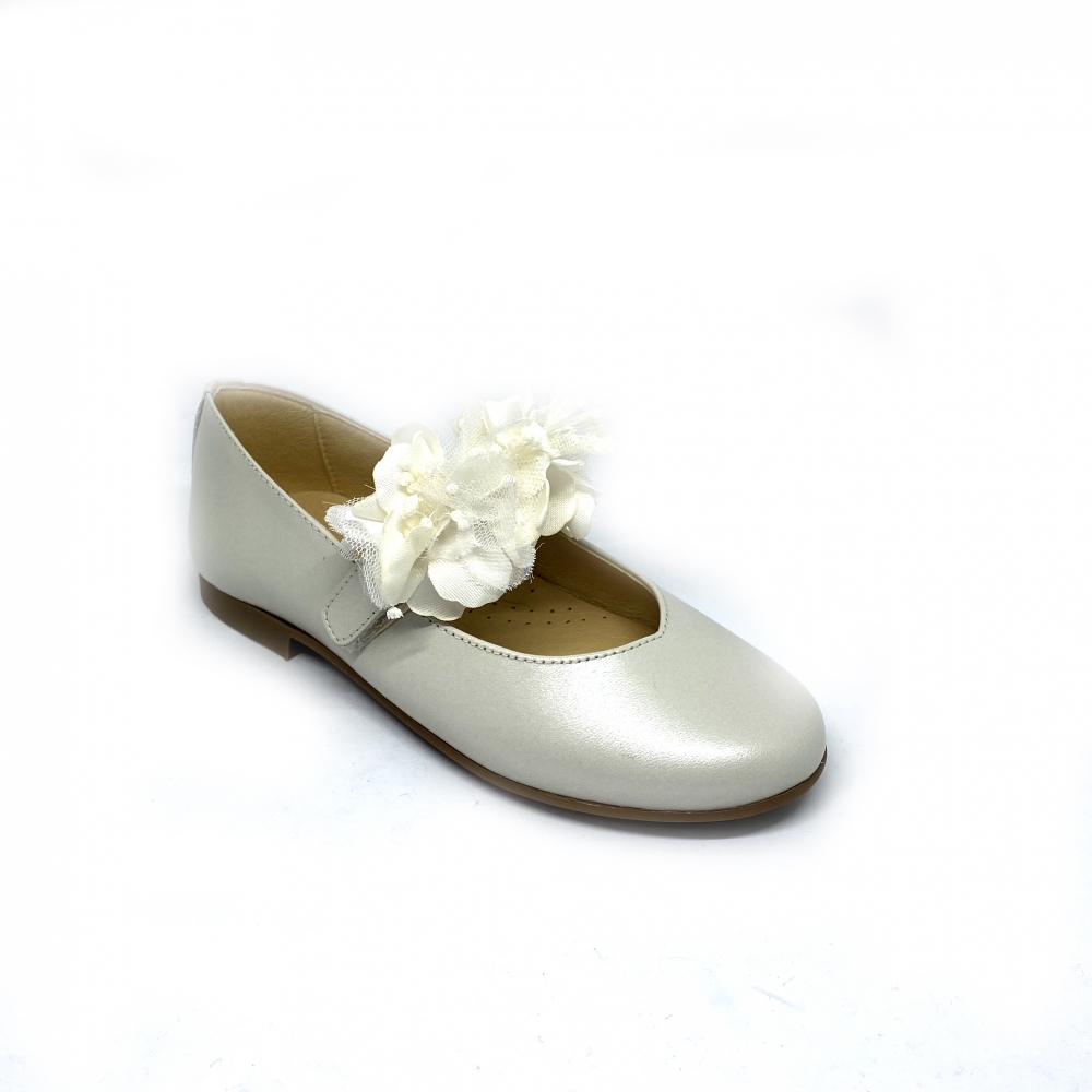 Un zapato fino, cómodo y elegante, ideal para completar looks de comunión y ceremonia con un toque clásico y luminoso.