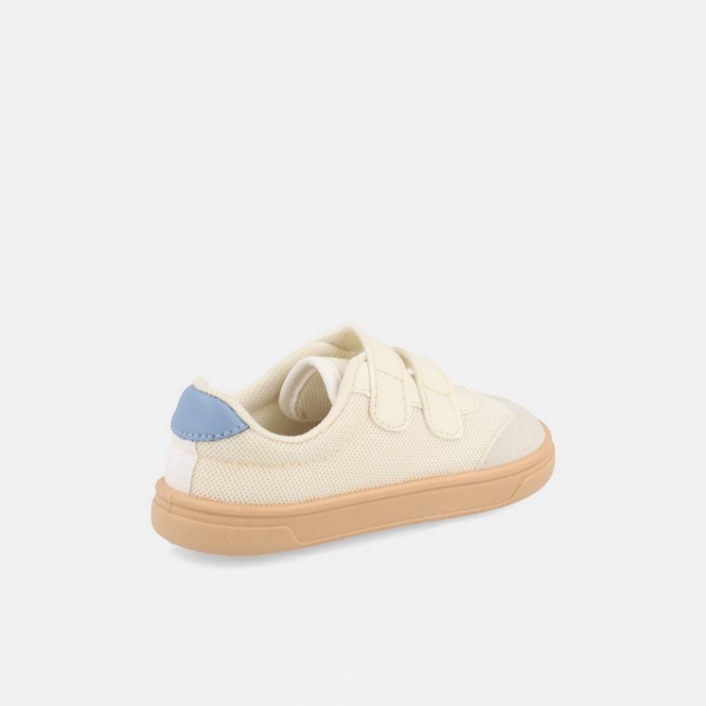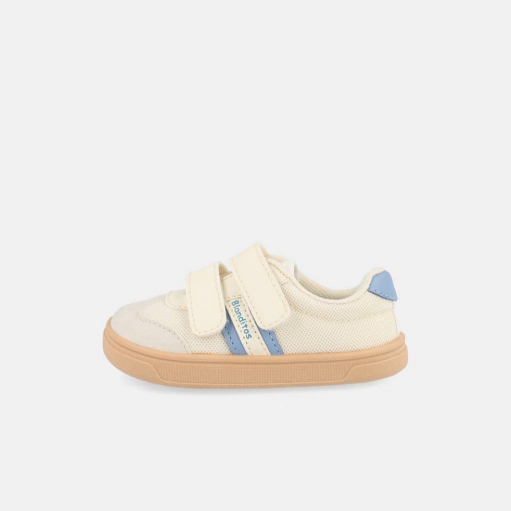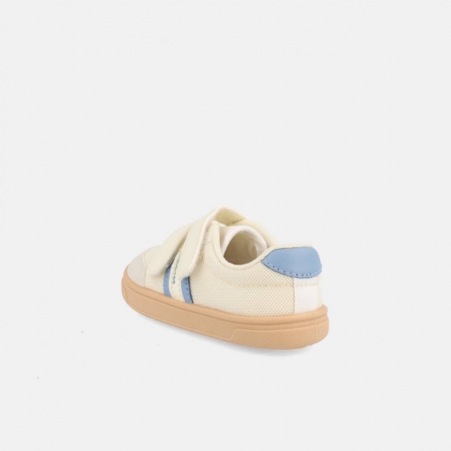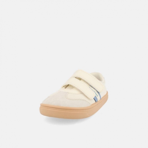 Zapatillas barefoot infantiles Blanditos Guppy bone, ligeras y respetuosas con el desarrollo del pie. Con puntera amplia, suela fina y flexible y cierre con velcro, permiten libertad de movimiento y autonomía en el día a día.