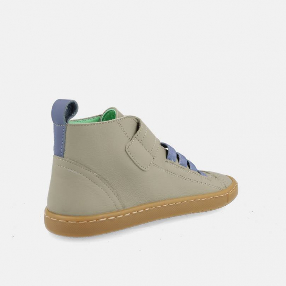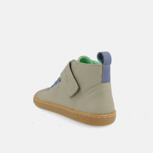 El botín respetuoso modelo Tokio en color verde con elásticos lilas combina estilo, comodidad y ergonomía. Diseñado para respetar el desarrollo natural del pie infantil, es perfecto para acompañar a los peques con confort y un toque moderno esta temporada.