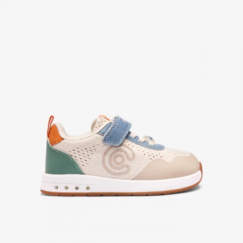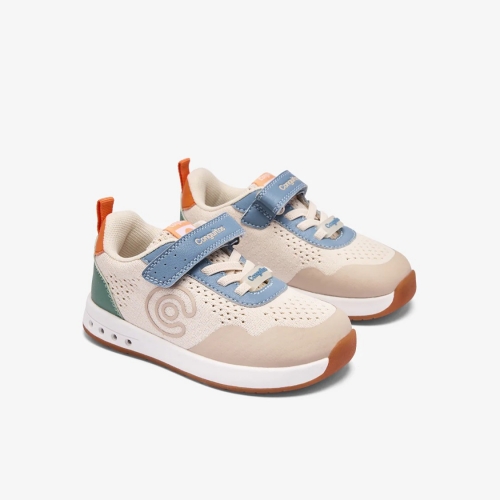 Las Zapatillas Barefoot Goflex Beige son un básico para el día a día, con detalles azules y verdes que aportan un toque moderno.