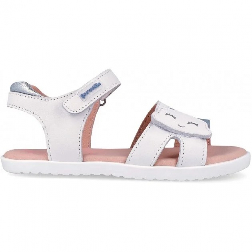 Las sandalias para niña GARVALIN 262431 Nube en color Blanco y Multicolor representan una combinación perfecta entre diseño cuidado, comodidad diaria y un estilo encantador pensado para acompañar cada paso con ligereza y seguridad. Este modelo destaca por su estética dulce y moderna, donde el blanco predomina como base elegante y versátil, acompañado de detalles en tonos suaves que aportan un toque multicolor muy delicado. La parte frontal presenta tiras que combinan acabados lisos y ligeramente brillantes, creando un efecto visual atractivo que capta la atención sin resultar excesivo. Además, el detalle decorativo en la pala con un simpático rostro añade un aire divertido que encantará a las más pequeñas. La estructura abierta permite una óptima ventilación del pie, ideal para los días más cálidos, mientras que su diseño ergonómico se adapta de forma natural a la forma del pie infantil.