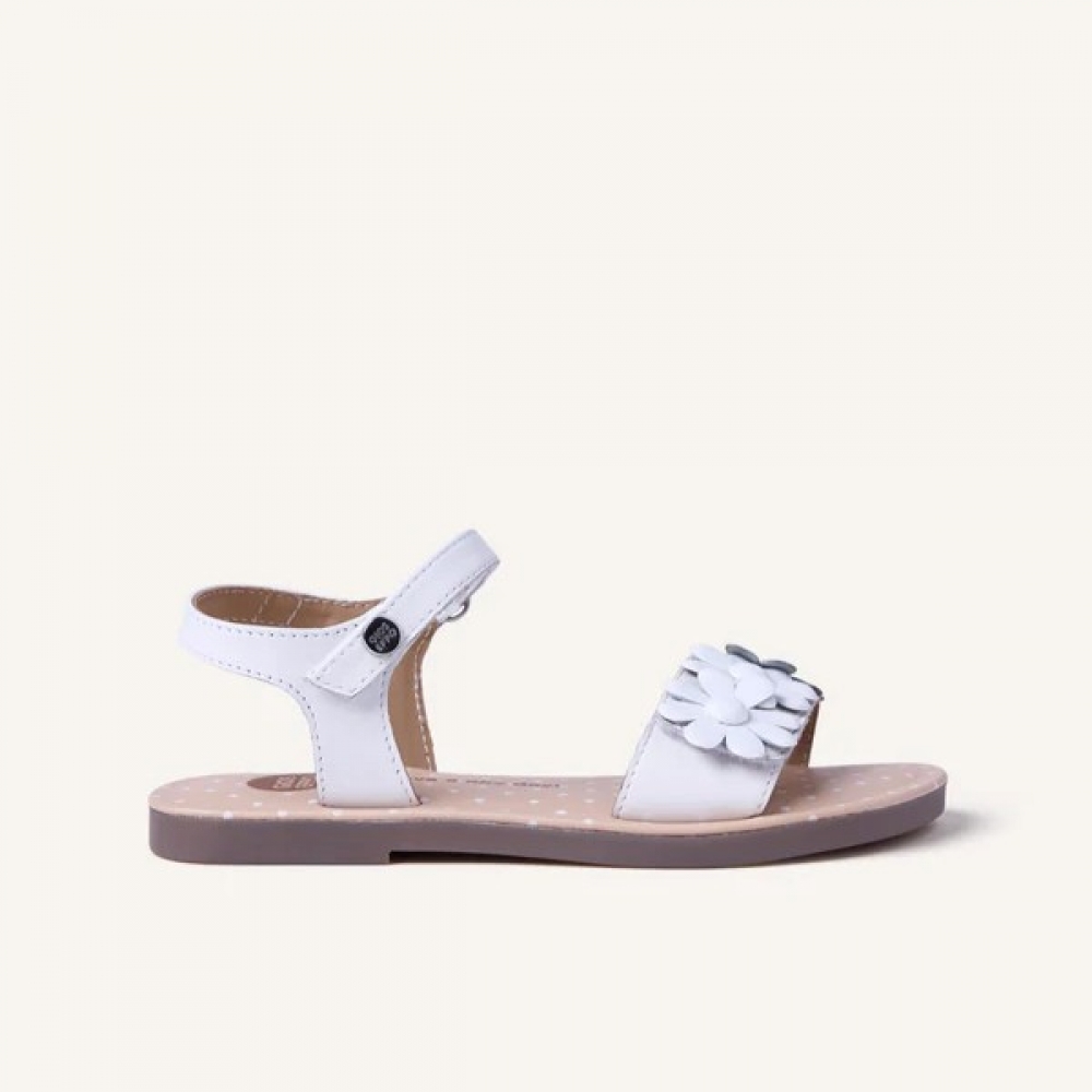 Sandalias de piel con detalle de flores. Cuentan con cierres ajustables en el tobillo y planta acolchada y estampada. Las posibles arrugas y diferencias en la piel o en el montado entre ambos pies son debidas al proceso artesanal y al uso de pieles naturales.