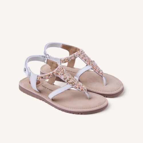 Sandalias estilo griegas con detalle de cuentas y abalorios. Ribete brillante. Cuentan con cierres ajustables en el tobillo y planta acolchada. Las posibles arrugas y diferencias en la piel o en el montado entre ambos pies son debidas al proceso artesanal y al uso de pieles naturales.