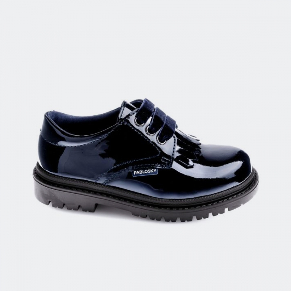Elegancia y durabilidad se combinan a la perfección con nuestro colegial de charol azul marino tipo blucher de Pablosky. Este zapato es ideal para quienes buscan un toque arregladito y sofisticado, sin renunciar a la resistencia y comodidad. El charol de alta calidad asegura que el zapato se mantenga impecable durante todo el año escolar.