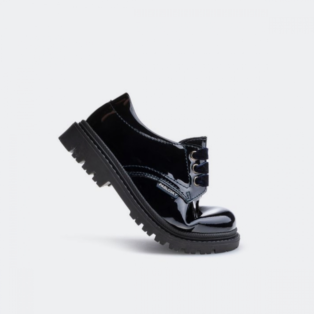 Colegial de Charol Azul Marino Tipo Blucher - Pablosky