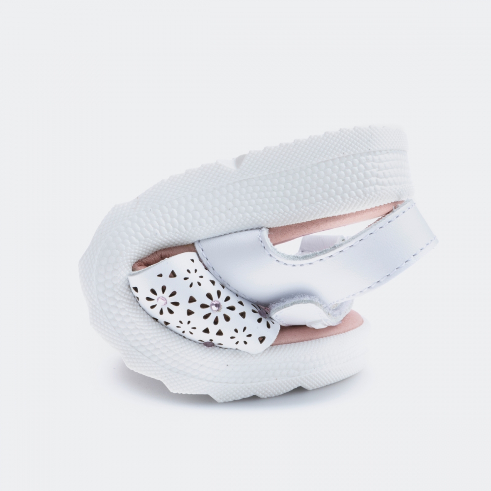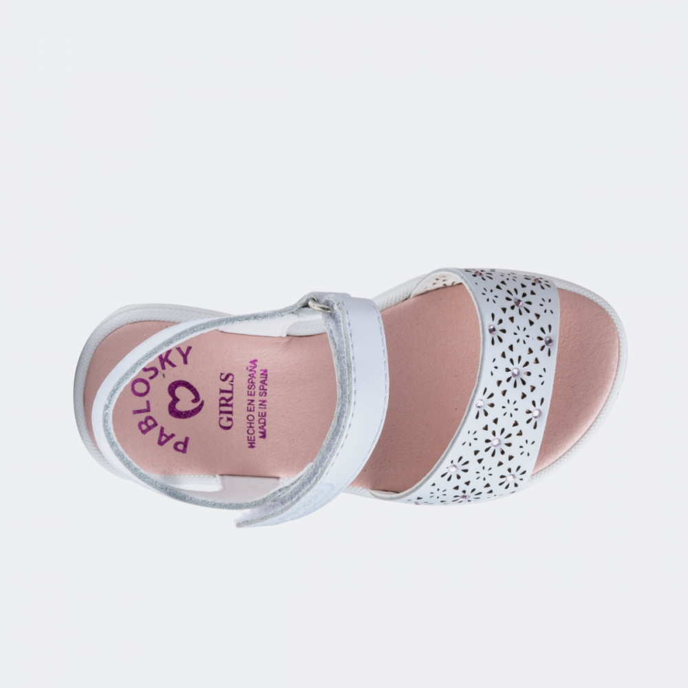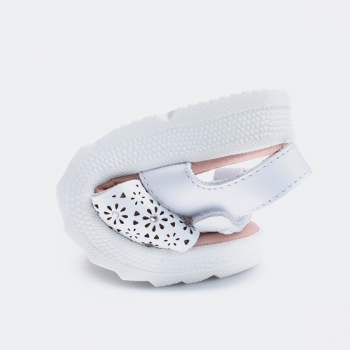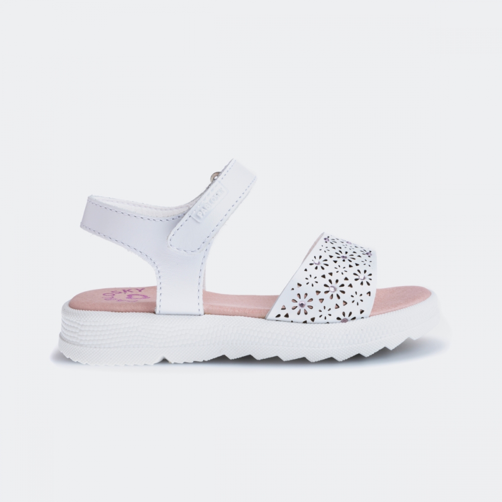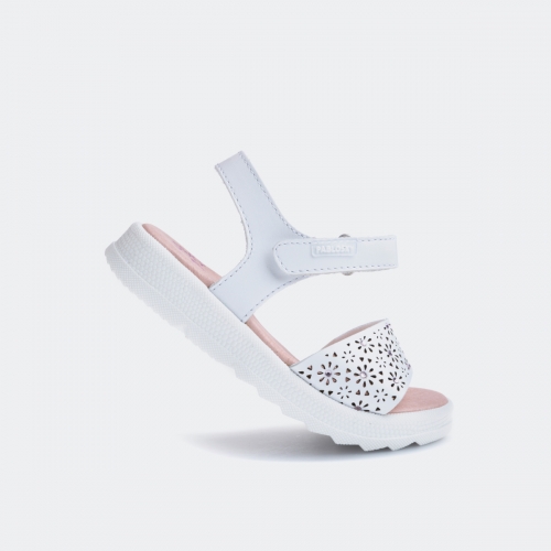 Esta sandalia blanca con la piel labrada y plataforma para niña es la opción perfecta para los días más calurosos. Su diseño elegante y femenino con cierre de velcro la convierte en una sandalia cómoda y versátil.