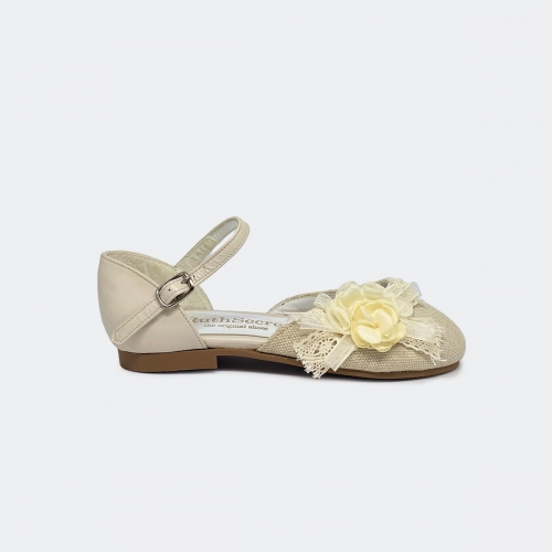 Este zapato mercedes de comunión de la marca Ruth Secret es la elección perfecta para un día tan especial. Su diseño elegante y atemporal, combinado con detalles modernos como la flor y la puntilla, lo convierten en un zapato único y memorable.