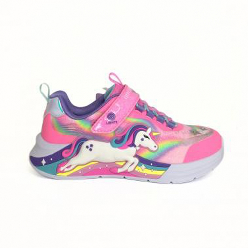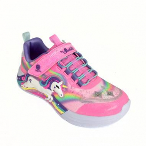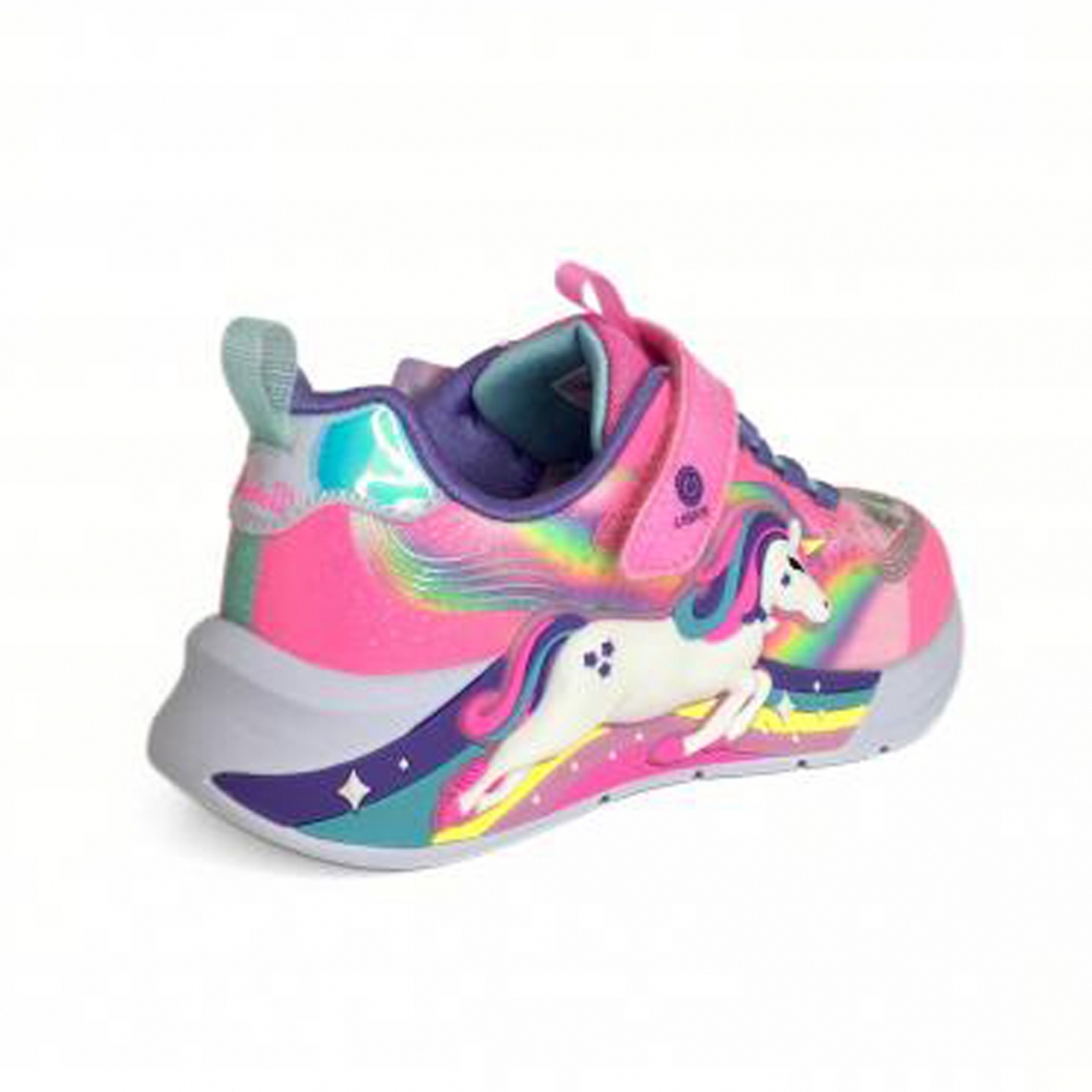 ¡Luz, color y fantasía en cada paso! El deportivo con luces de unicornio de Skechers es perfecto para niñas que sueñan en grande y adoran los diseños llenos de magia. Combina la comodidad característica de la marca con un diseño encantador que hace brillar cualquier look.