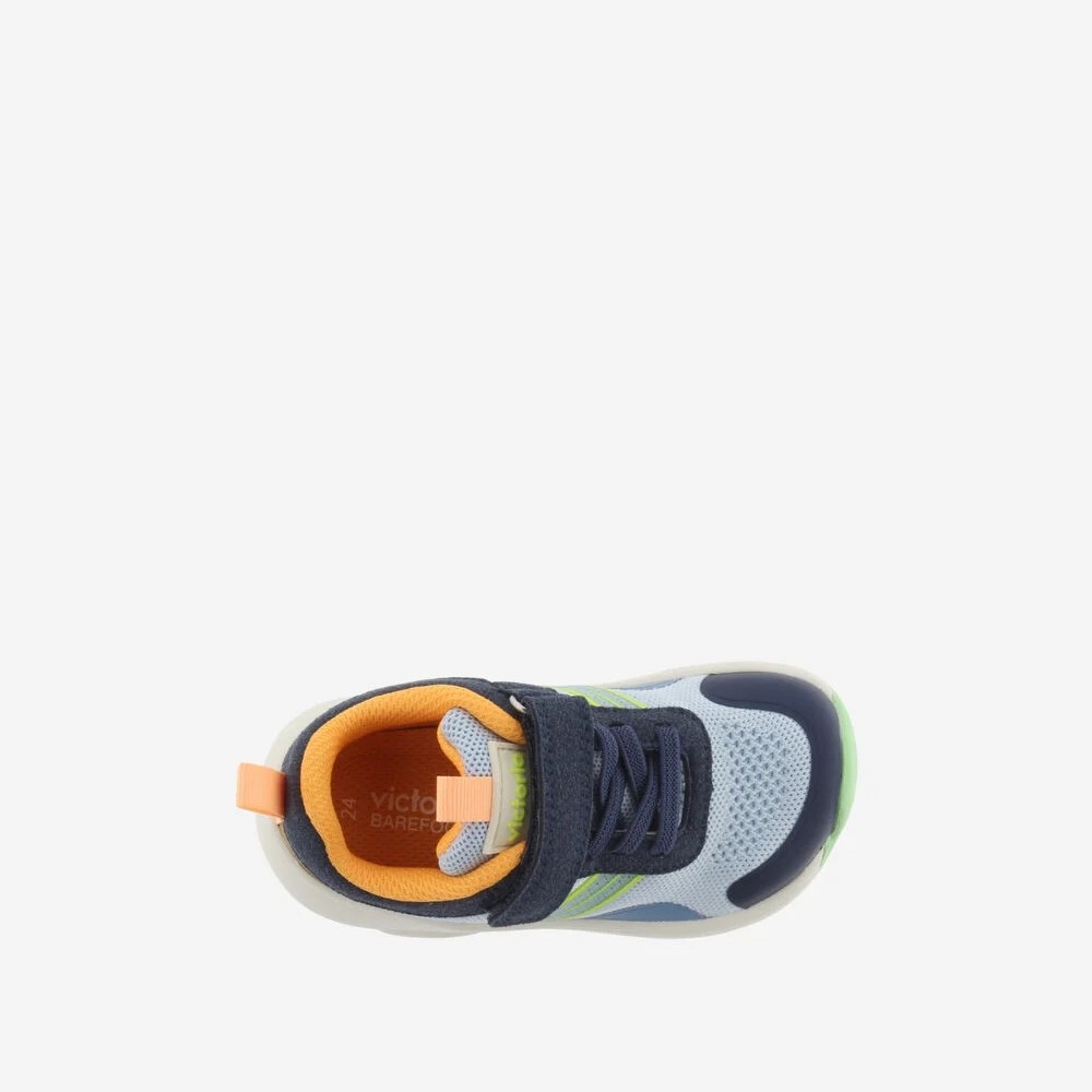 Zapatillas deportivas barefoot multicolor para niños fabricadas en nylon. Cierre mediante cordón elástico, que se acompaña de una tira adherente para facilitar el calce y aportar sujección. Cuentan también con un tirador trasero y otro en la lengüeta. Cómoda suela de phylon con patín de goma bicolor.