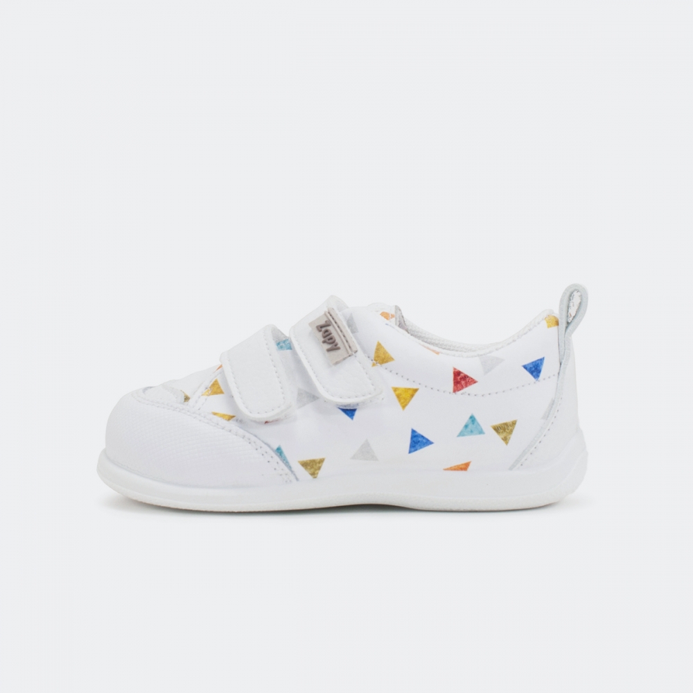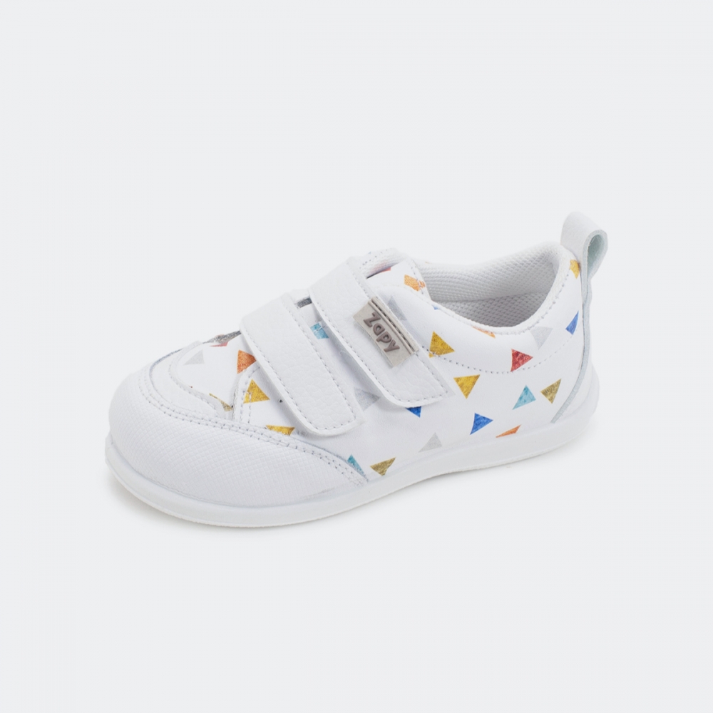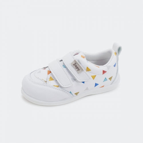 Deportivo respetuoso en textil transpirable con triángulos de colores. Cierre de velcro y plantilla extraíble. Muy blandito y flexible. De la marca zapy fabricado en Elche. Zapy tiende a calzar más bien pequeño por lo que si el niño/a está entre dos tallas siempre recomendamos una tallita más grande. Cada par es diferente a otro ya que los dibujitos de la piel nunca serán los mismos. TALLAN PEQUEÑOS, SE RECOMIENDA PEDIR UNA TALLA MÁS DE LA HABITUAL. ESTE ARTÍCULO NO TIENE CAMBIO NI DEVOLUCIÓN.
