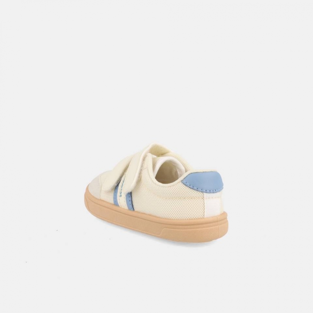 Zapatillas barefoot infantiles Blanditos Guppy bone, ligeras y respetuosas con el desarrollo del pie. Con puntera amplia, suela fina y flexible y cierre con velcro, permiten libertad de movimiento y autonomía en el día a día.