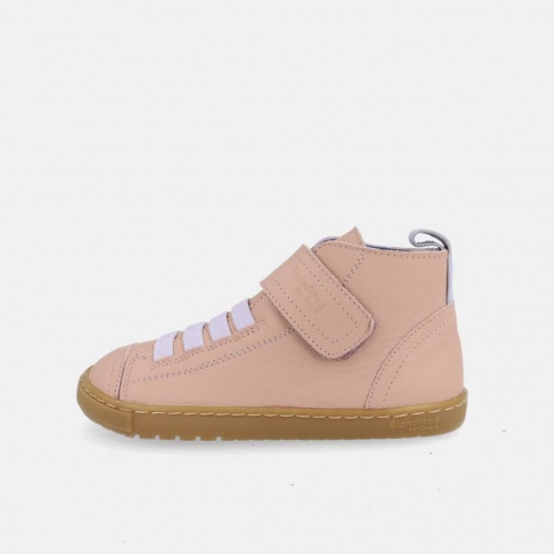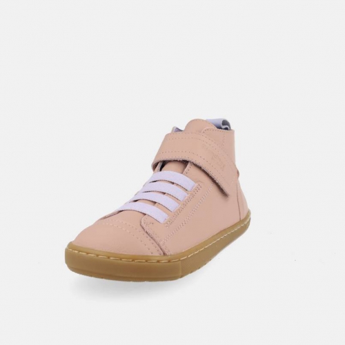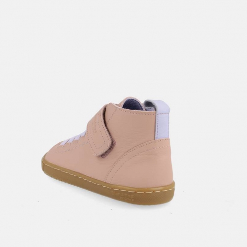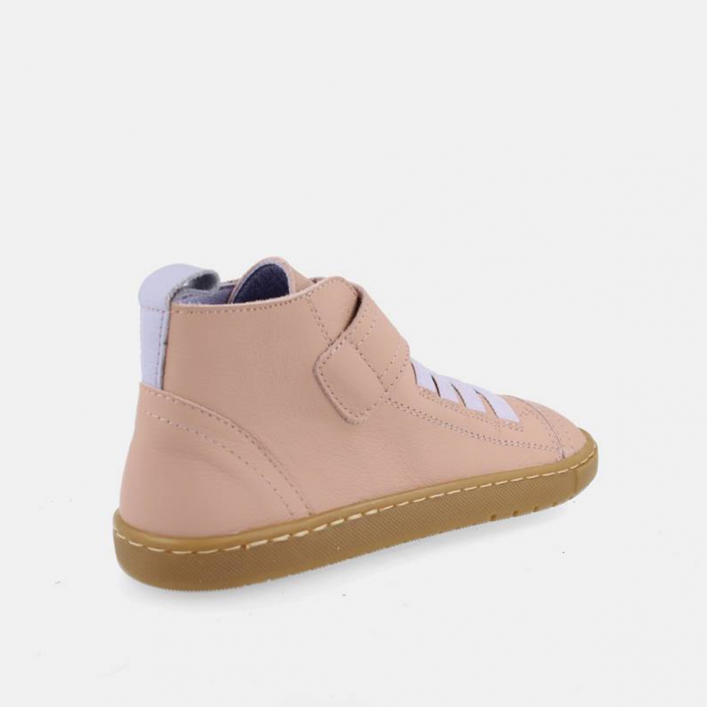 El botín respetuoso modelo Tokio en color rosa palo con elásticos lilas combina estilo, comodidad y ergonomía. Diseñado para respetar el desarrollo natural del pie infantil, es perfecto para acompañar a los peques con confort y un toque moderno esta temporada.