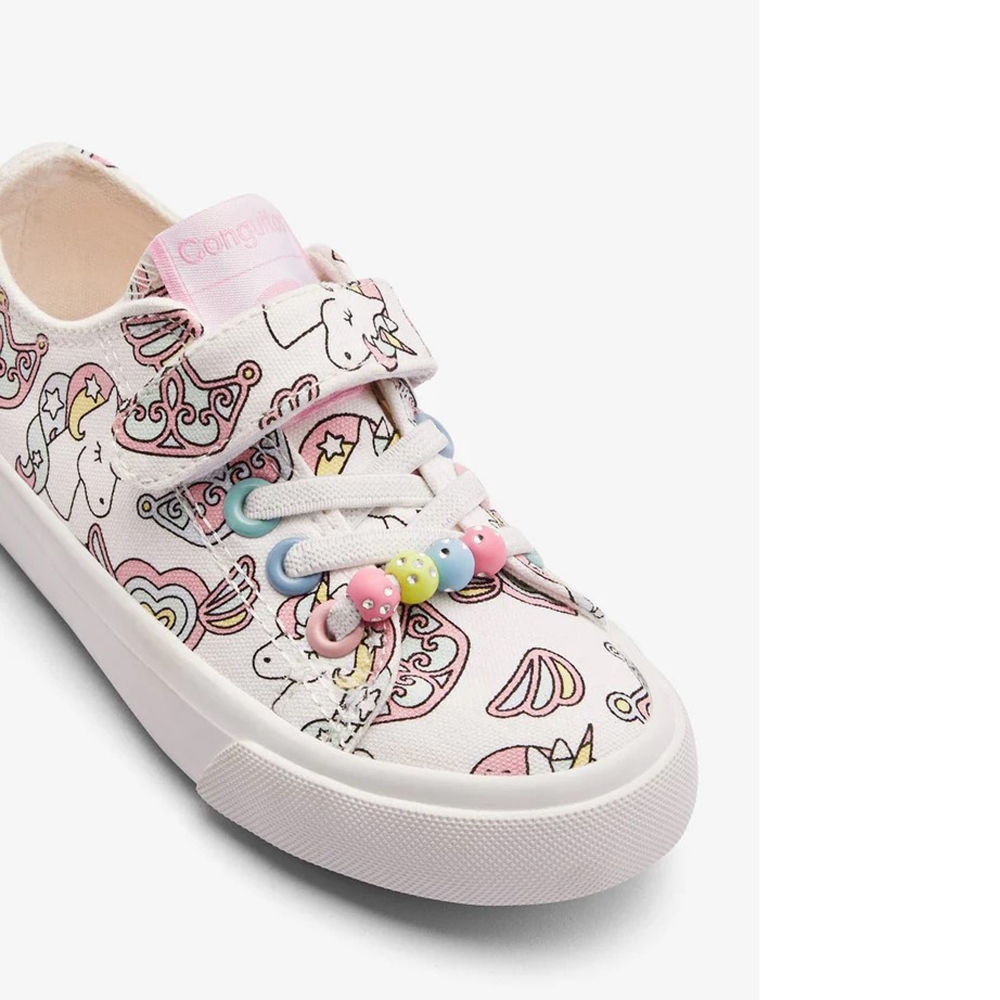 Dale un toque mágico a los pasos de las más pequeñas con estas encantadoras zapatillas deportivas Conguitos. Diseñadas en lona resistente y transpirable, ofrecen una combinación perfecta de confort y estilo para el día a día.
