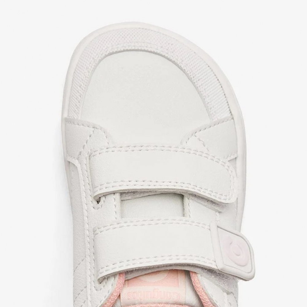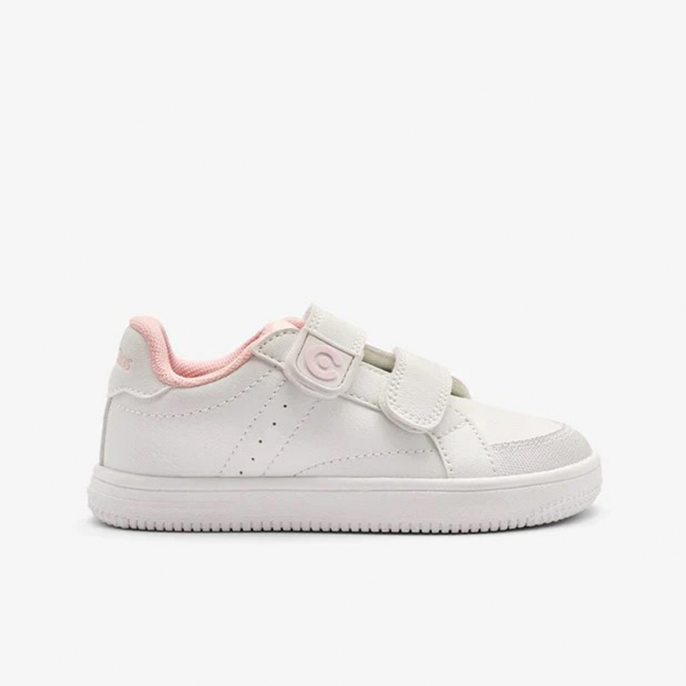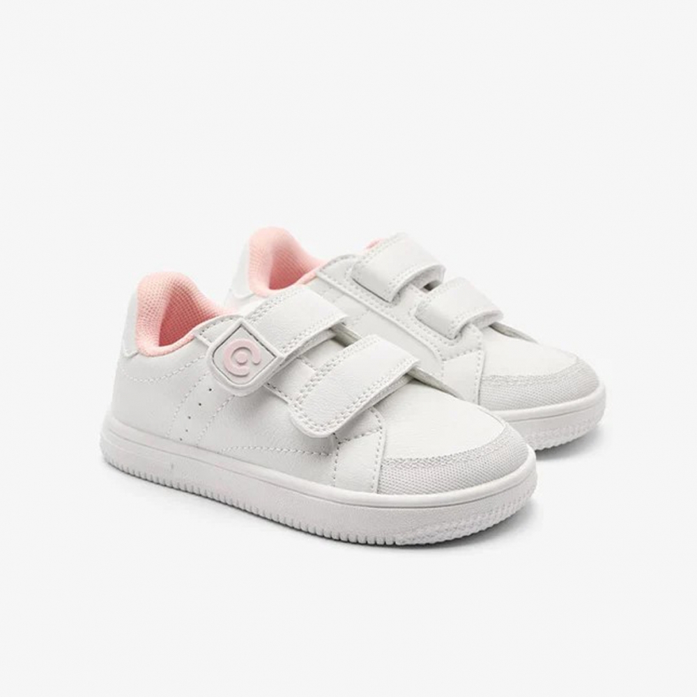 El deportivo respetuoso de Conguitos en color blanco con detalles en rosa es la opción ideal para acompañar a los peques en su día a día, combinando diseño limpio y moderno con un enfoque ergonómico que respeta el desarrollo natural del pie infantil.