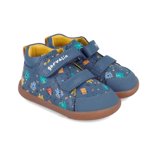 ¡Dale un toque de diversión a los primeros pasos de tu peque con el deportivo respetuoso de Garvalín! Este modelo en color azul con suela caramelo no solo destaca por su diseño alegre con estampados de muñequitos, sino también por su confort y respeto por el desarrollo natural de los pies. Perfecto para acompañar a los más pequeños en su día a día, este deportivo es una combinación ideal de estilo, calidad y comodidad.