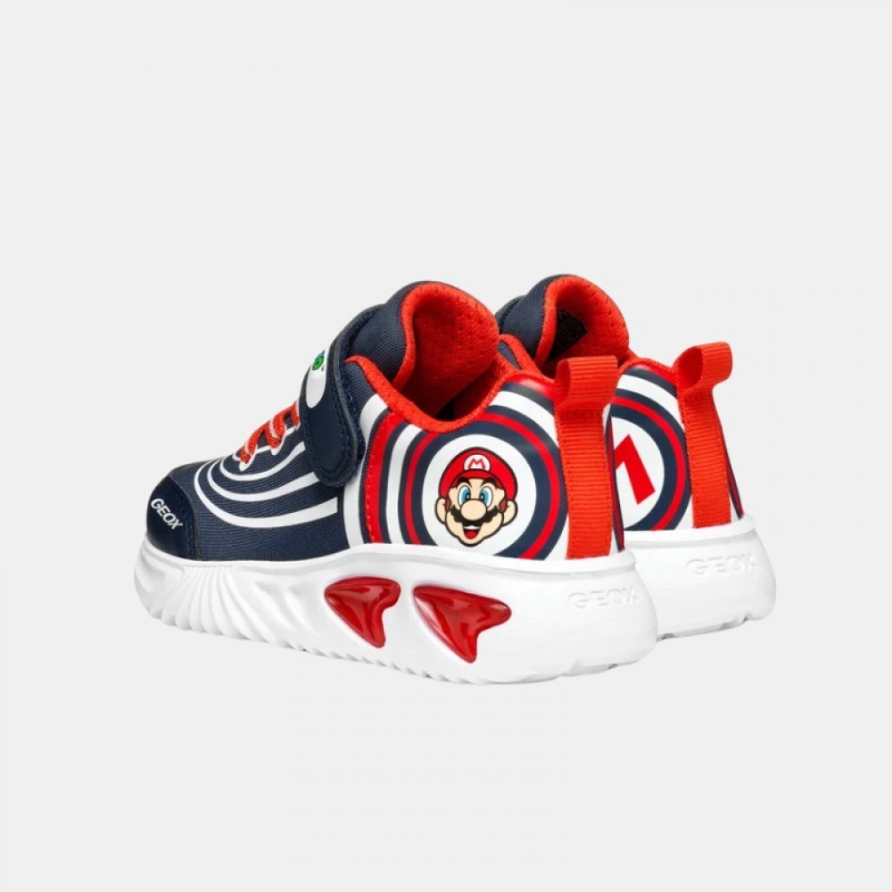 Las zapatillas deportivas Geox de Super Mario Bros combinan comodidad, estilo y tecnología en un diseño perfecto para los más pequeños. Con luces integradas en la suela y un botón on/off, permiten personalizar la experiencia de uso. Su sistema de cierre con velcro y elástico garantiza un ajuste seguro y fácil de poner y quitar.