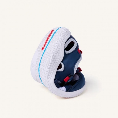 Sandalias tipo cangrejeras con rejilla y con acentos de color. Diseñadas siguiendo las tendencias minimalistas para garantizar la pisada natural. Cuentan con cierres ajustables en el empeine.