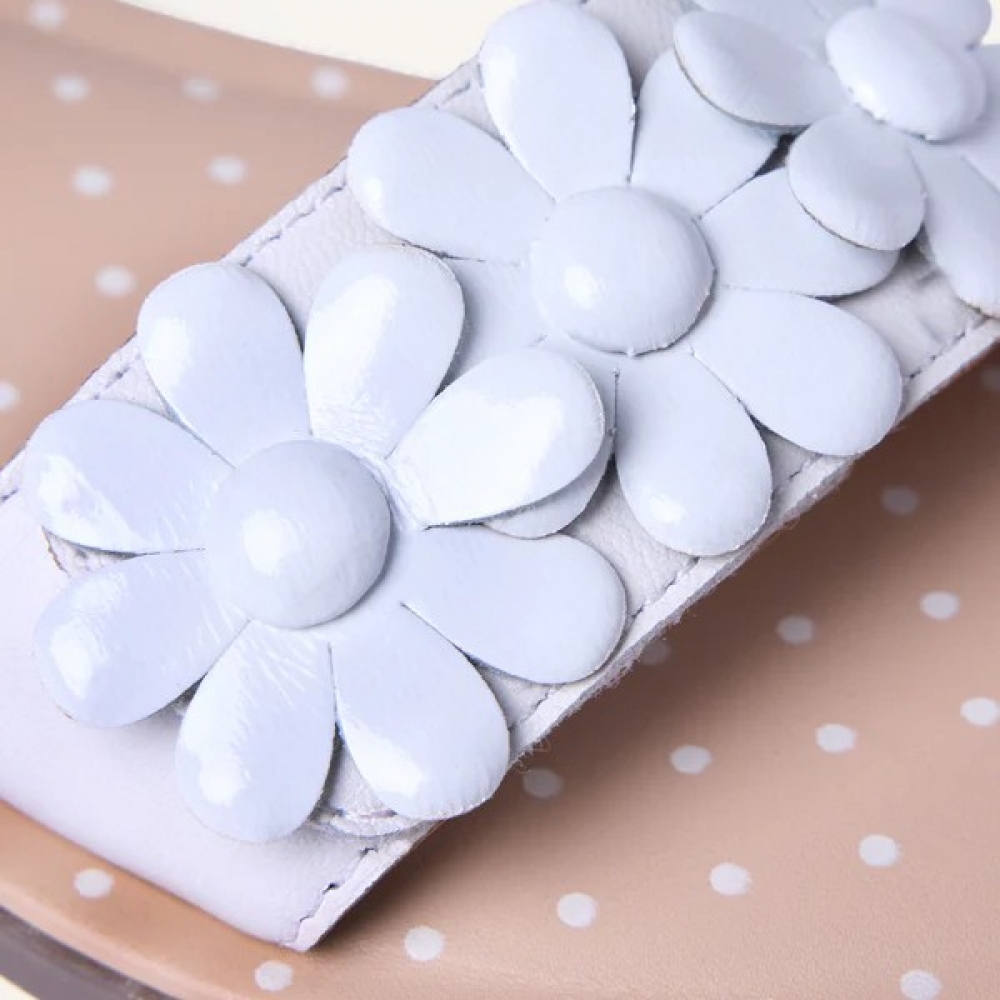 Sandalias de piel con detalle de flores. Cuentan con cierres ajustables en el tobillo y planta acolchada y estampada. Las posibles arrugas y diferencias en la piel o en el montado entre ambos pies son debidas al proceso artesanal y al uso de pieles naturales.