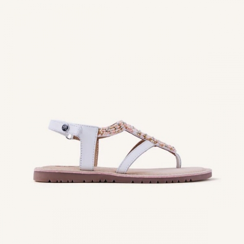 Sandalias estilo griegas con detalle de cuentas y abalorios. Ribete brillante. Cuentan con cierres ajustables en el tobillo y planta acolchada. Las posibles arrugas y diferencias en la piel o en el montado entre ambos pies son debidas al proceso artesanal y al uso de pieles naturales.