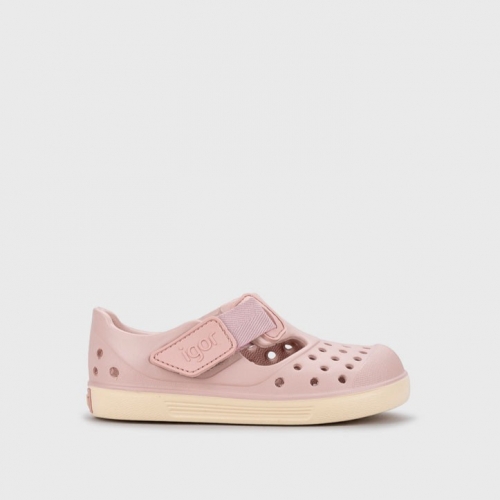 Zapatilla de agua bicolor de E.V.A. súper ligera diseñada en concepto barefoot medium, cero drop, flexible, blandita, y con cierre adherente.