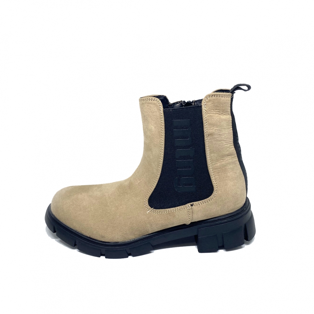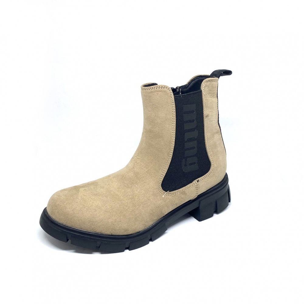 Botas estilo chelsea muy modernas con estilo street y una suela gruesa de goma con plataforma de 4 cm. Están fabricadas en serratex color taupe con una gran goma en el lateral donde lleva el logo de la marca y se cierra con una cremallera en la parte interior. Su forro es de textil muy cómodo con una plantilla suave. ESTE ARTÍCULO NO TIENE CAMBIO NI DEVOLUCIÓN.
