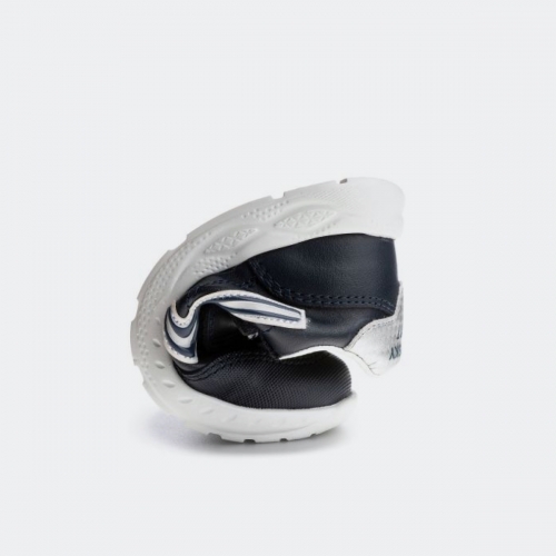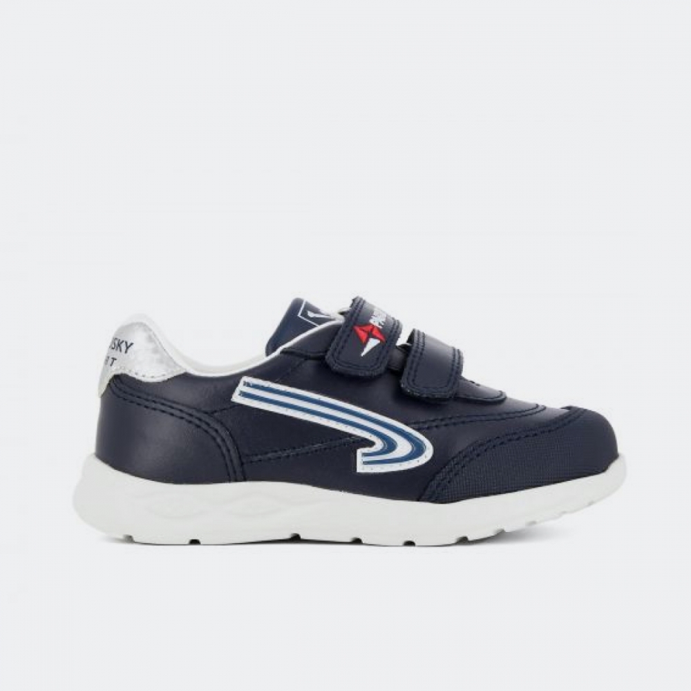 Zapatillas derportivas azul marino con detalles en blanco y puntera reforzada. Diseñadas para alcanzar el rendimiento deportivo óptimo. Confort, resistencia y ligereza en un calzado completamente español.