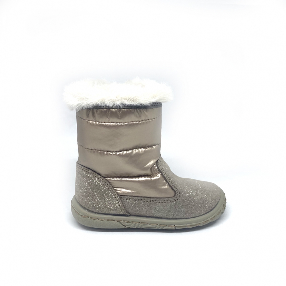 Botita acolchada con la pala en glitter. Con la punterita reforzada de la marca Zapy hechas en Elche, Alicante. Esta marca tiende a calzar pequeño por lo que recomendamos no comprarlas justas y pedir una talla más de la habitual.